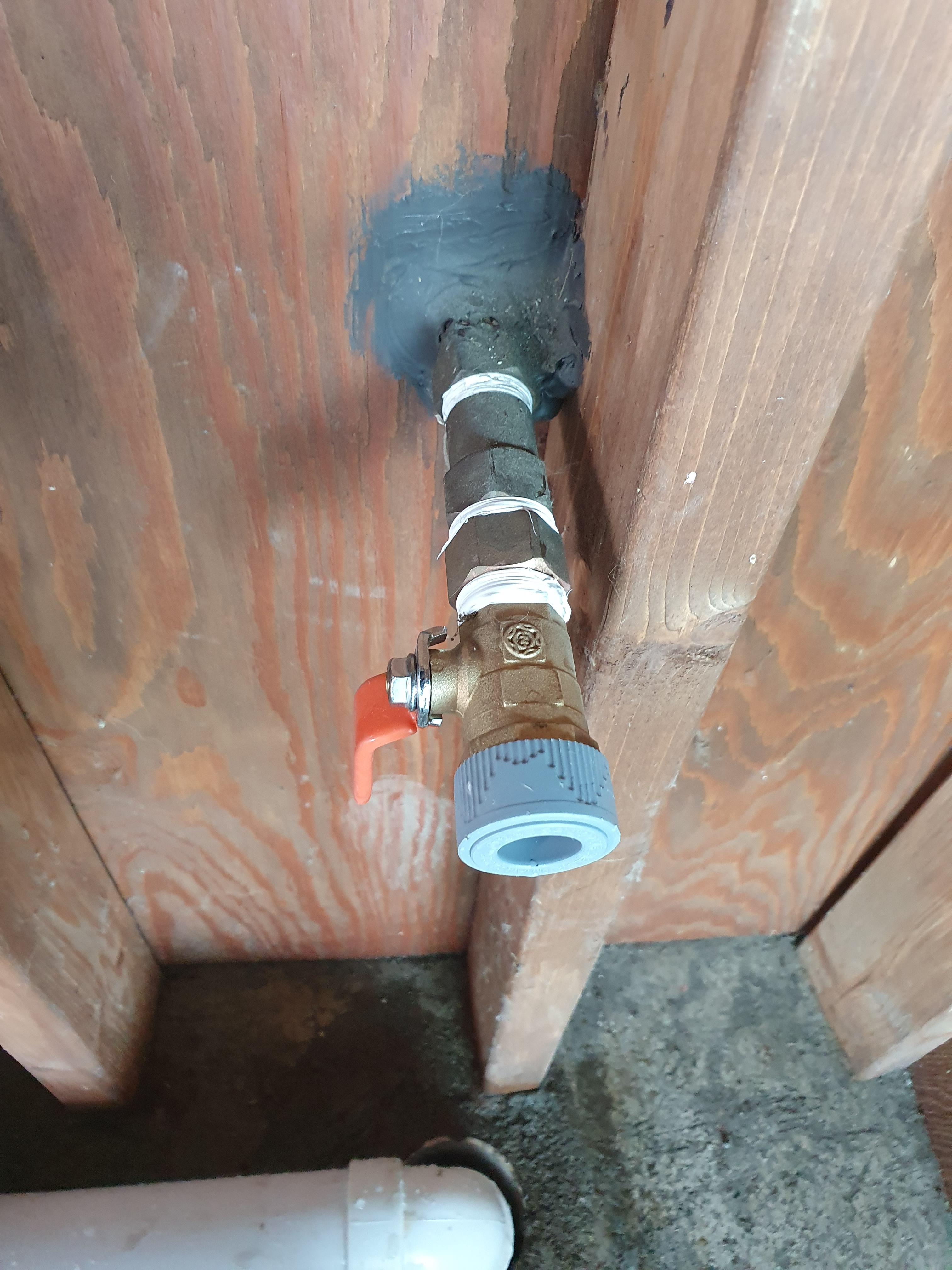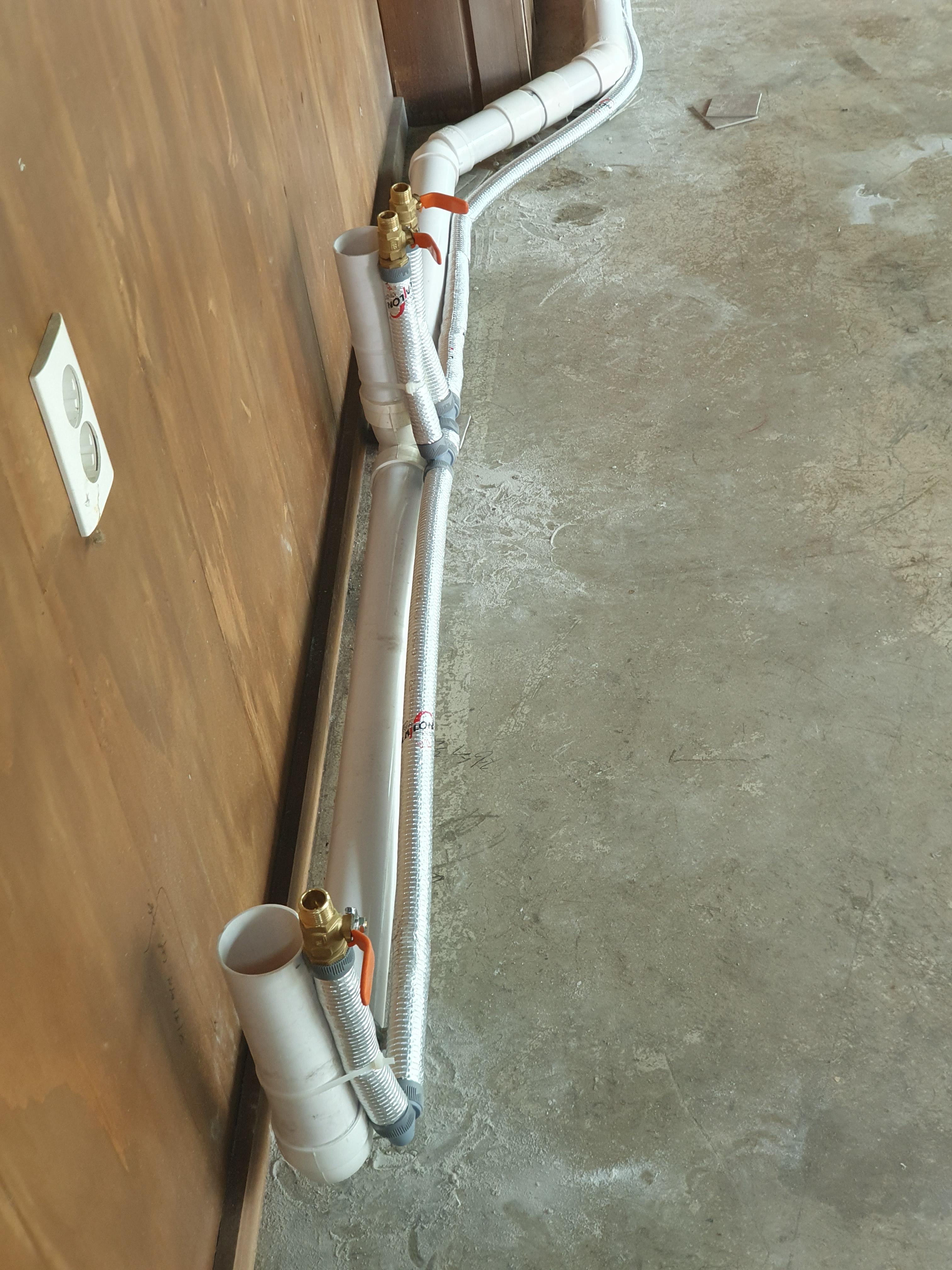 이곳에는 싱크대가 주방 안에 있기에 온수관이 필요 없어서 급수관만 설치합니다.