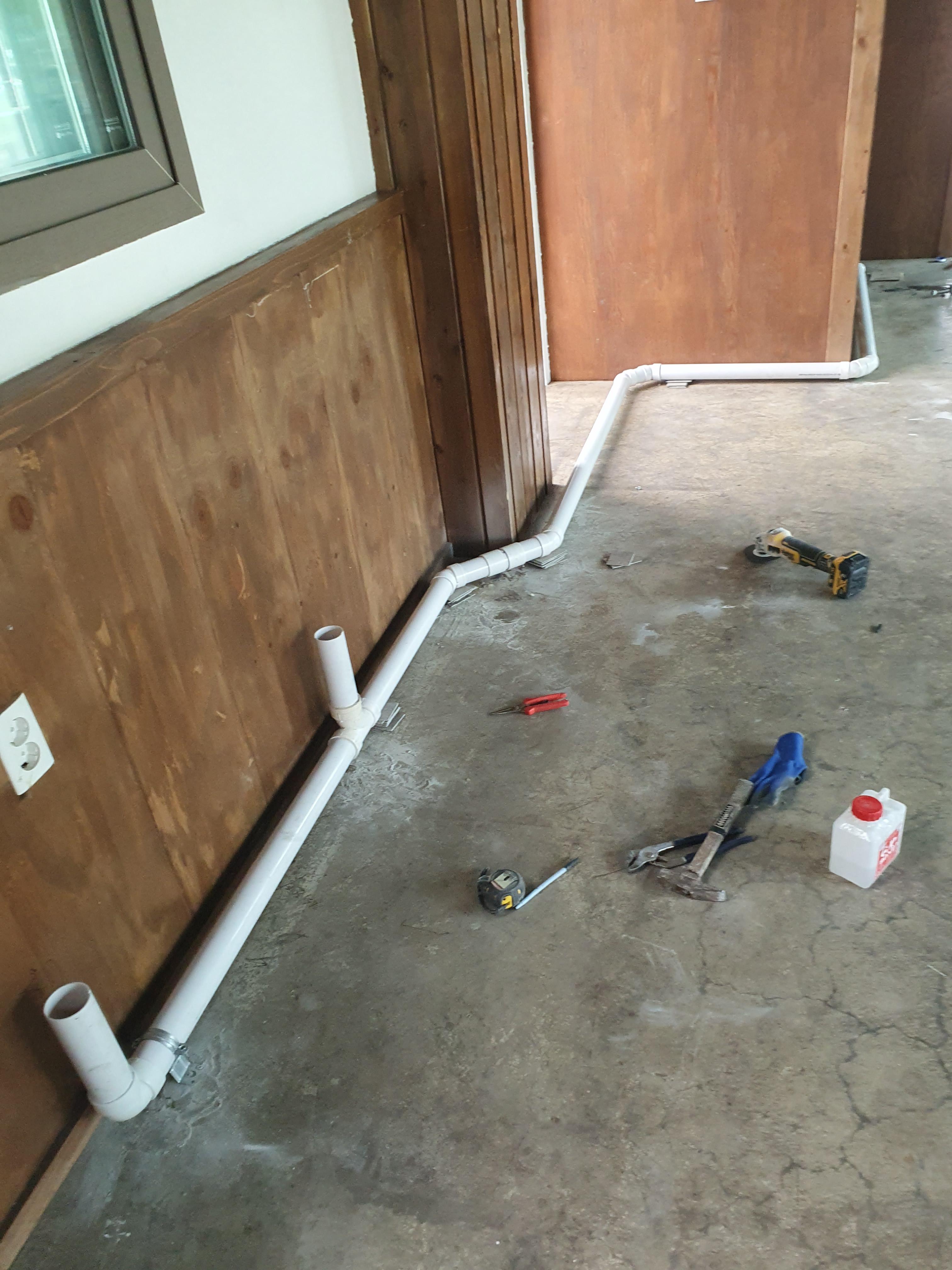 먼저 pvc 배수관부터 공사를 시작합니다.