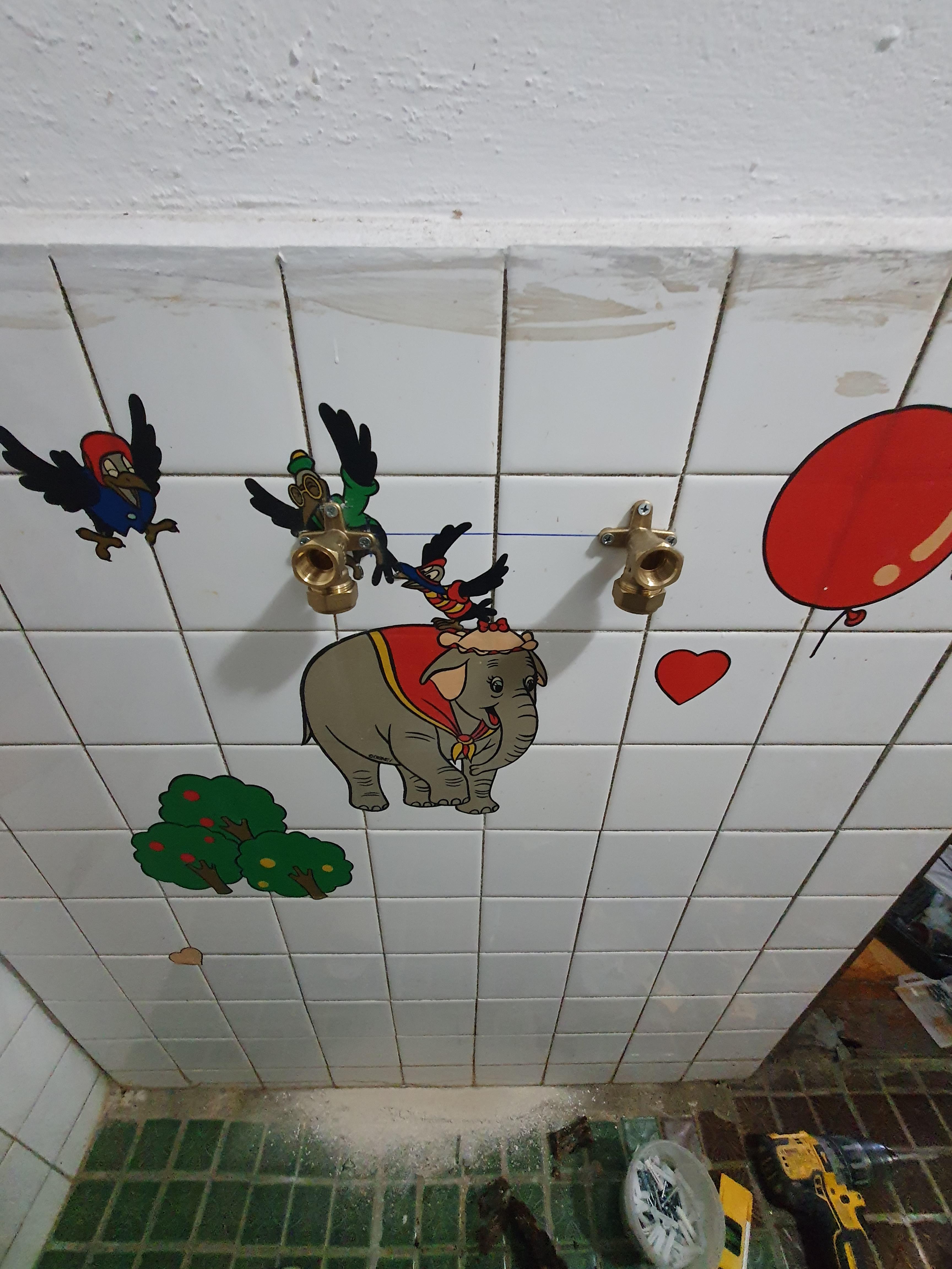 먼저, 샤워기를 설치할 수 있도록 부속을 사용해서 한쪽 벽에 시공을 해 줍니다.