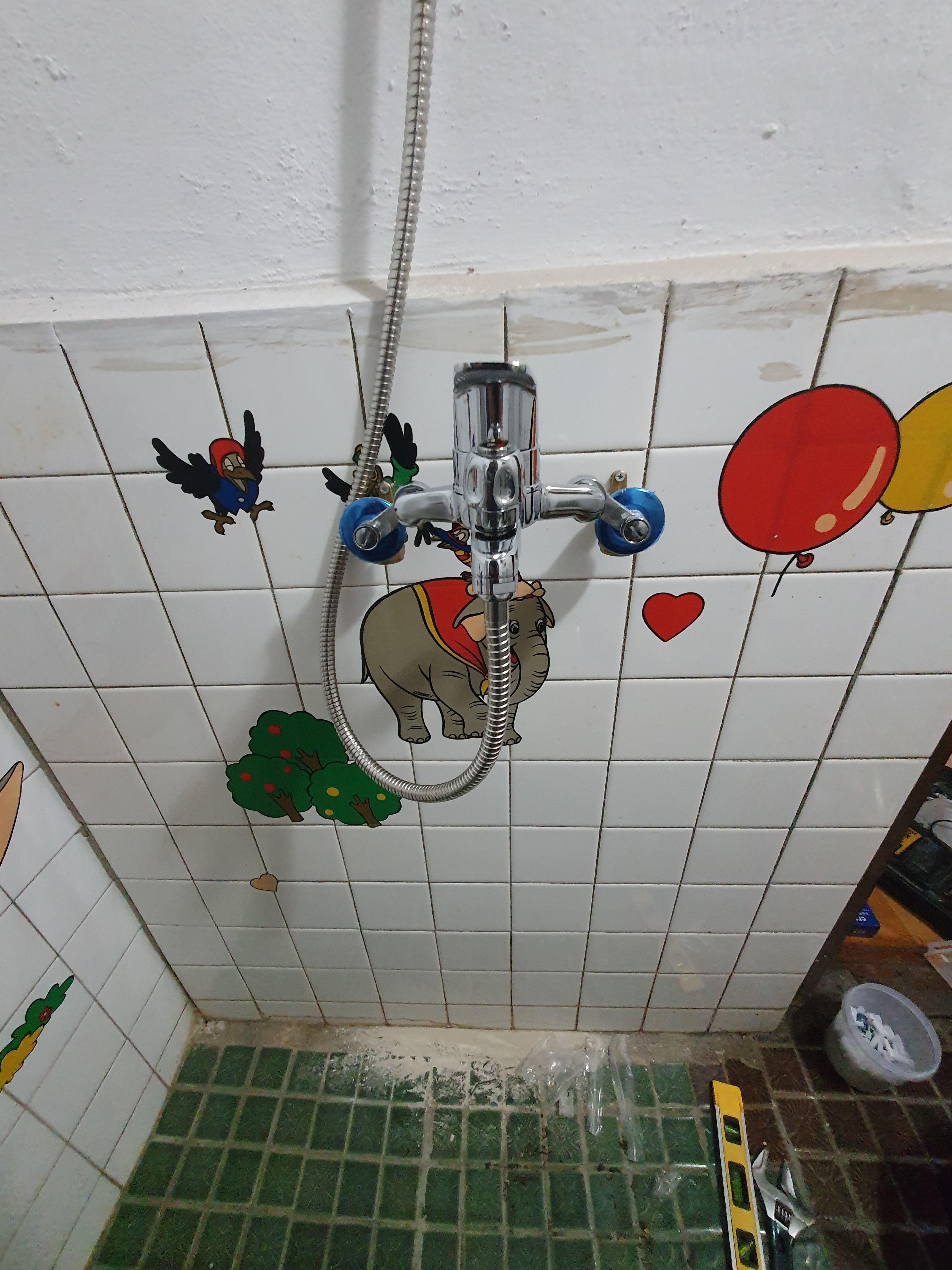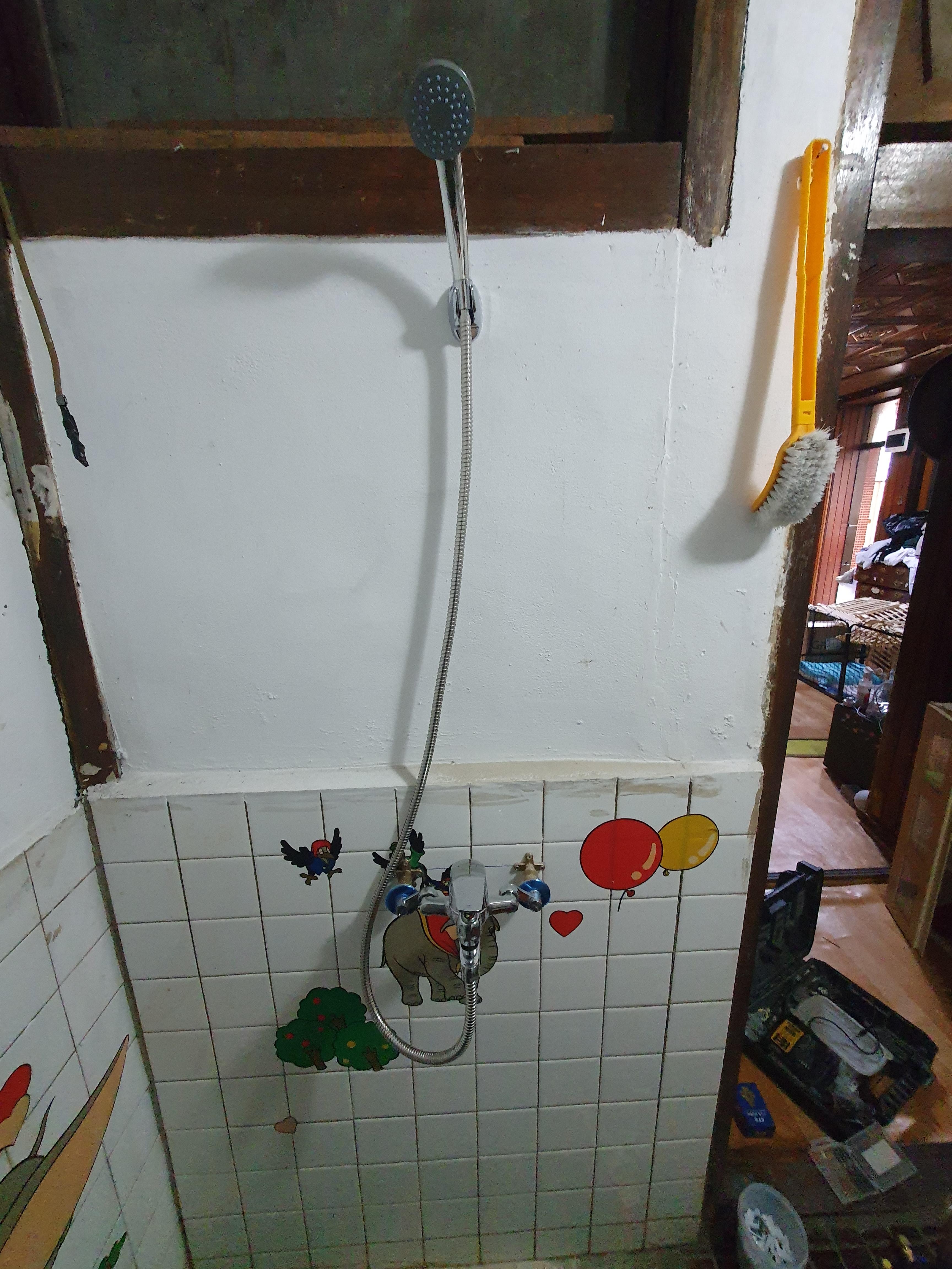 시간이 조금 지나서 💦 물이 데워졌다면 시공해 놓은 샤워기 수전을 온수 쪽으로 틀어서 데워진