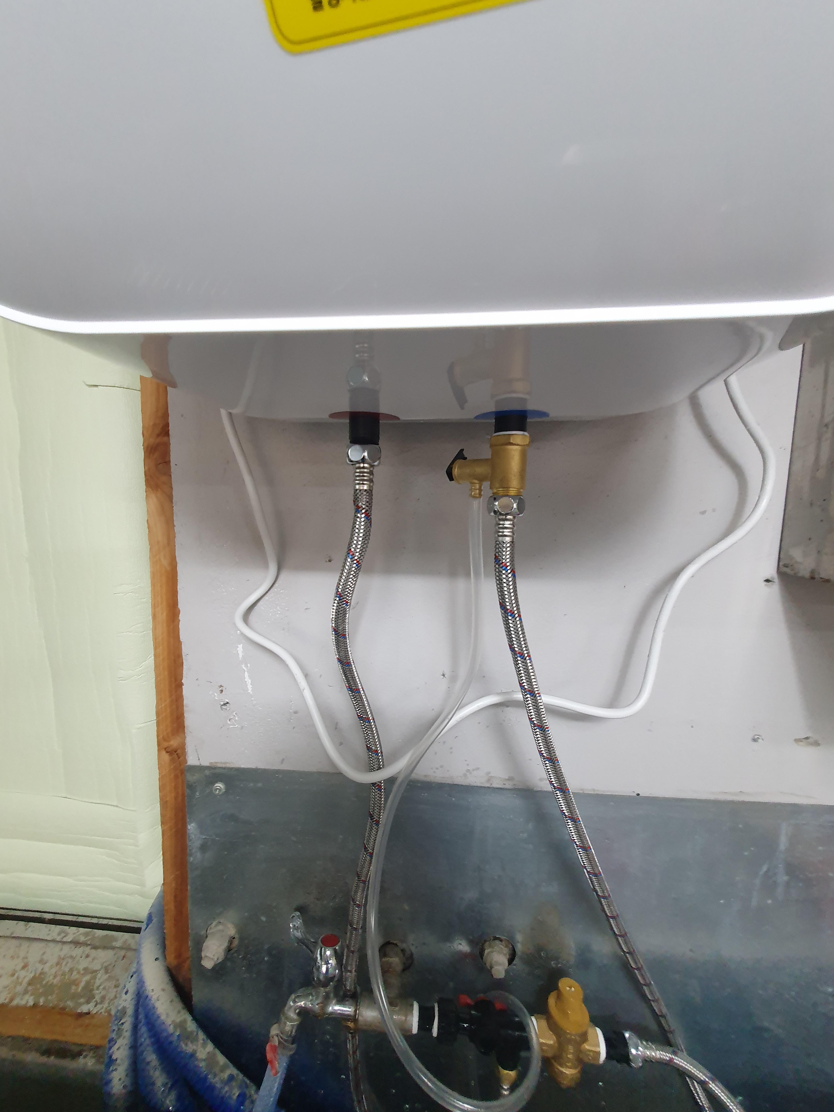이젠, 부산 ⚡️⚡️⚡️전기온수기에 배관까지 연결이 다 됐으니 온수기에 💦 물을 채워 줍니다.