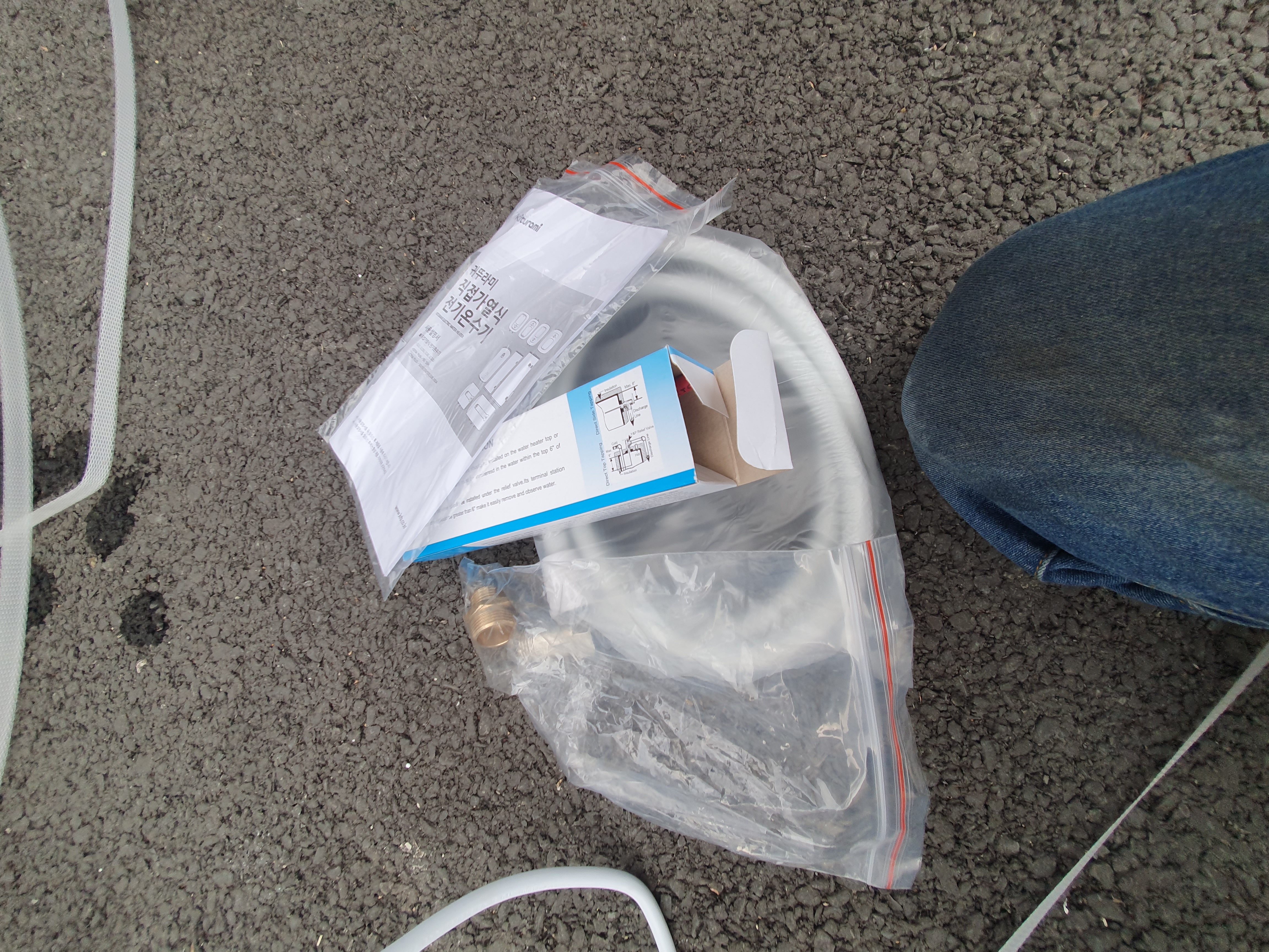 제품에 안전밸브와 드레인 호스, 체크밸브, 부속을 체결해 줍니다.