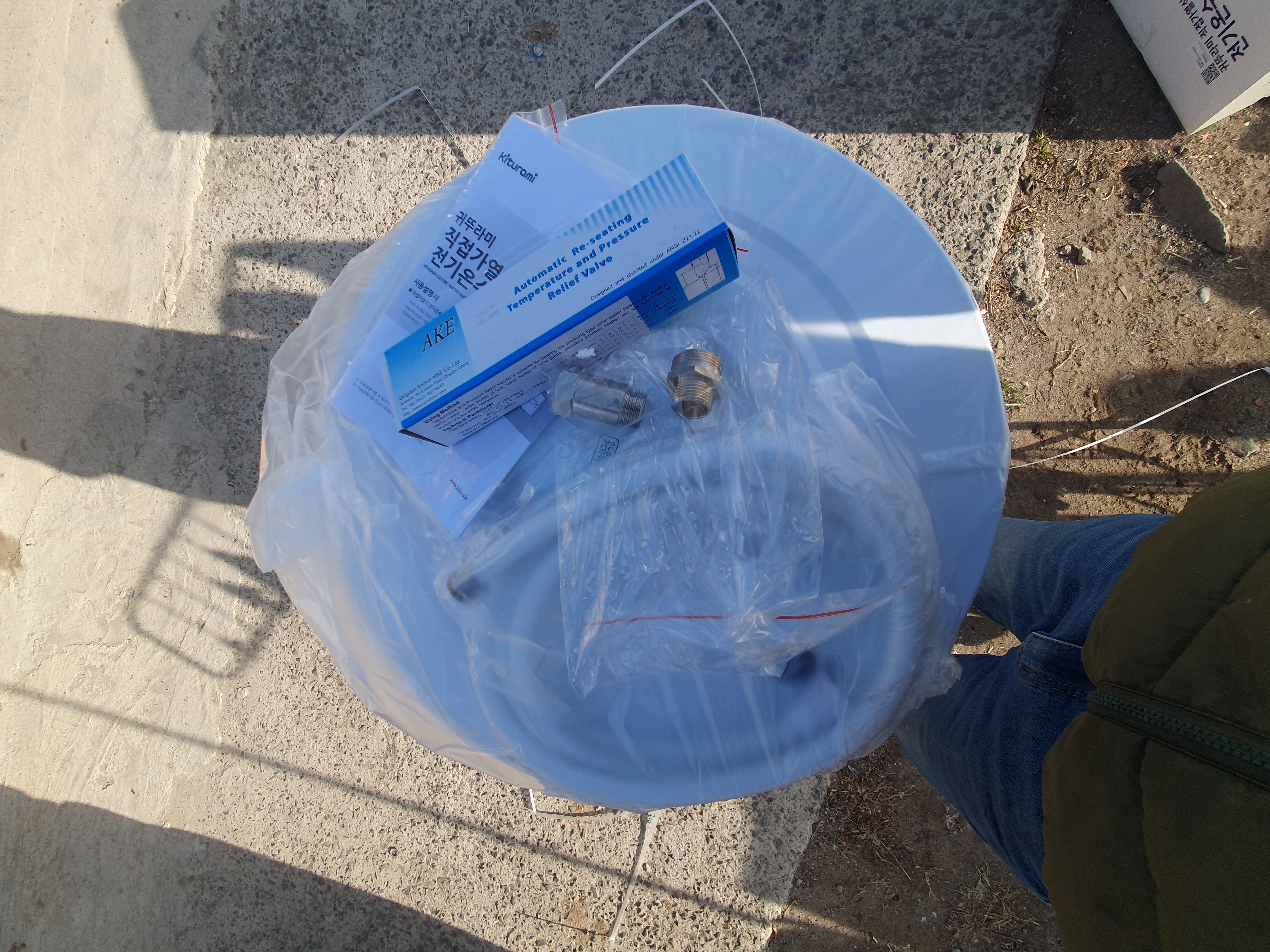 제품을 박스에서 꺼내서 안전밸브와 부속을 체결해 줍니다.