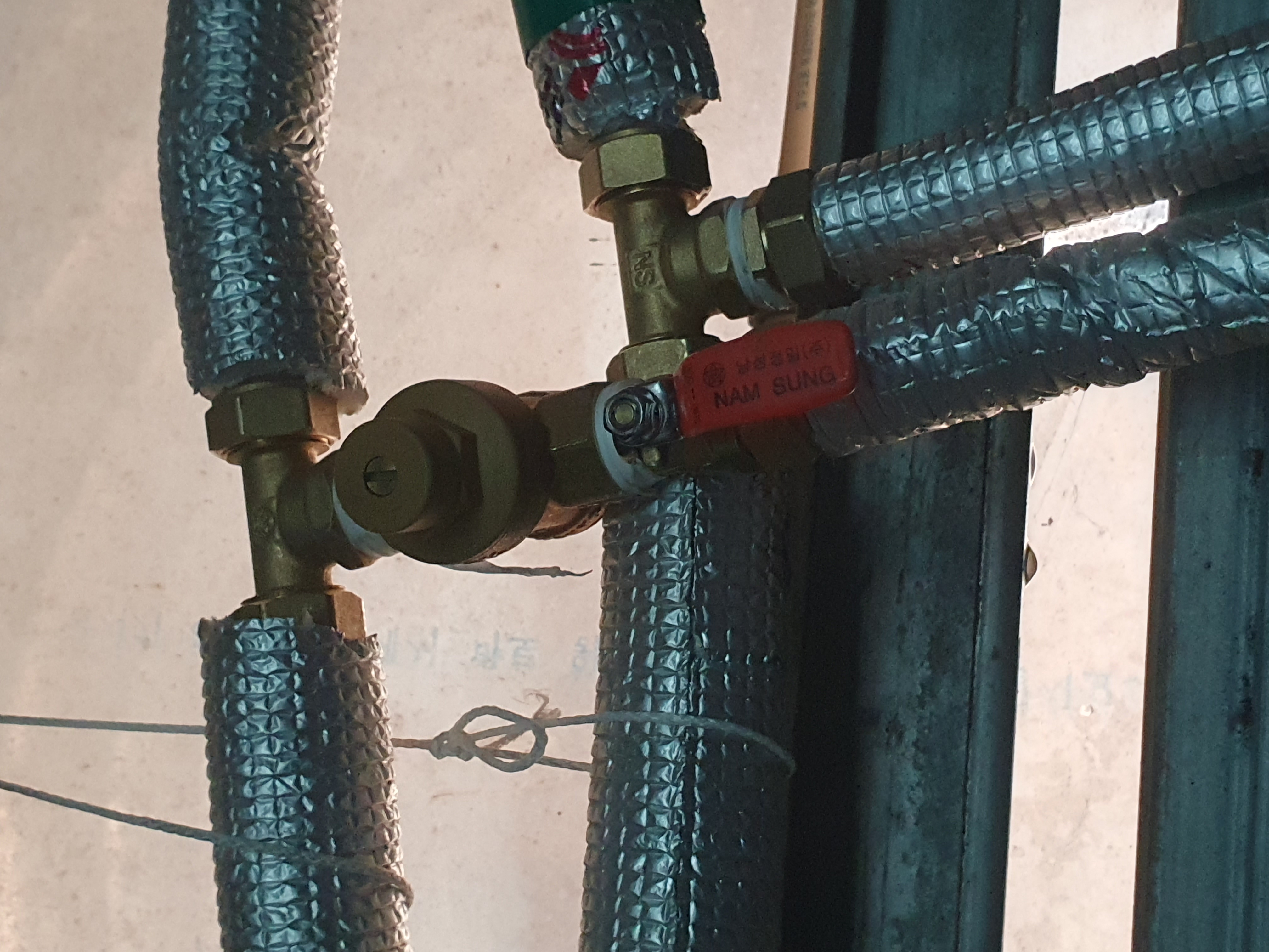 감압밸브를 설치 후 부속을 체결해 놓은 의령 ⚡️⚡️⚡️전기온수기를