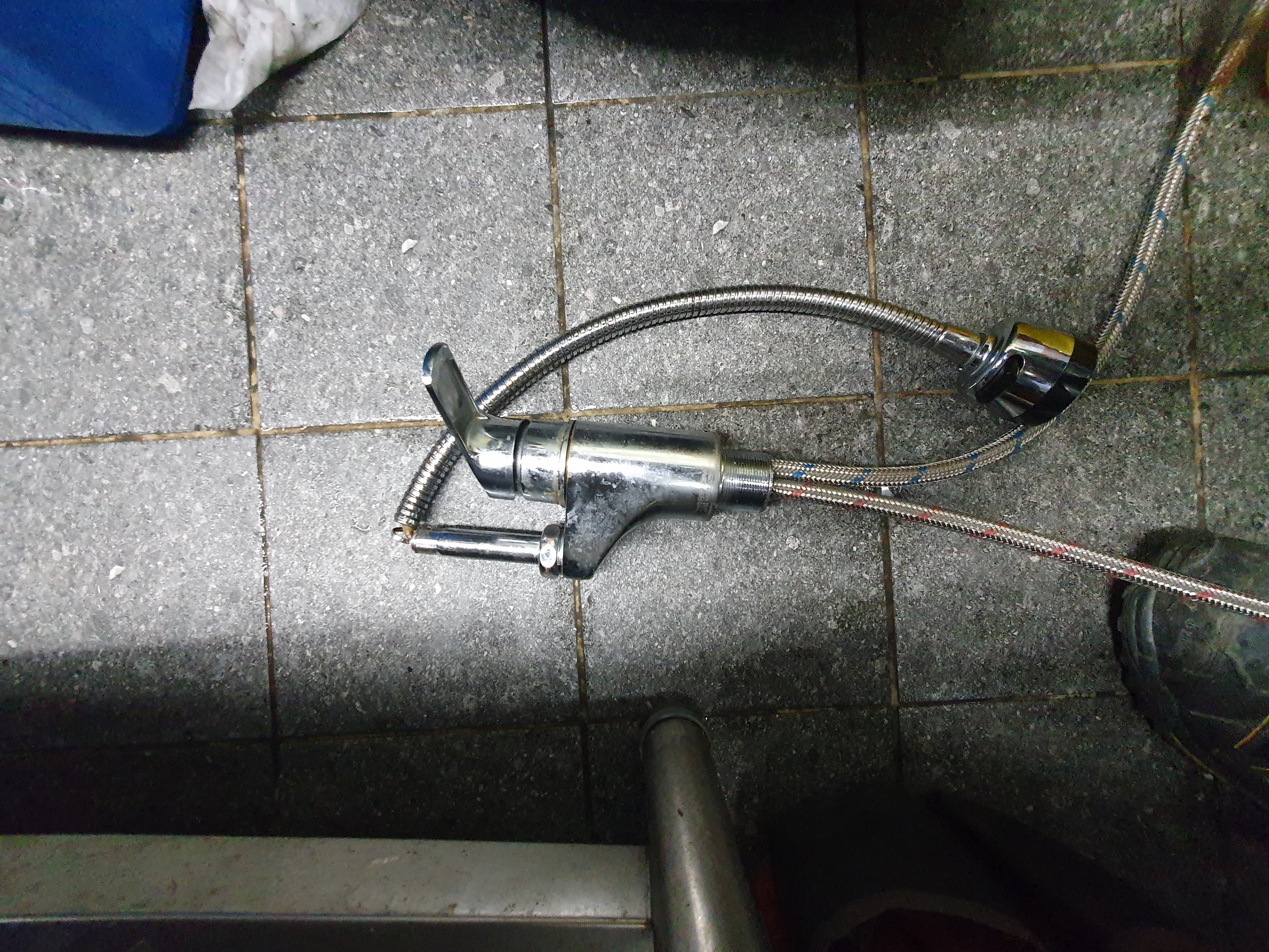현장에 도착해서 고장 난 마산 싱크대 수전을 보니 싱크대 원홀 수전의 코브라 목이 부러져 있고 고정도 제대로 되어 있지 않았습니다.